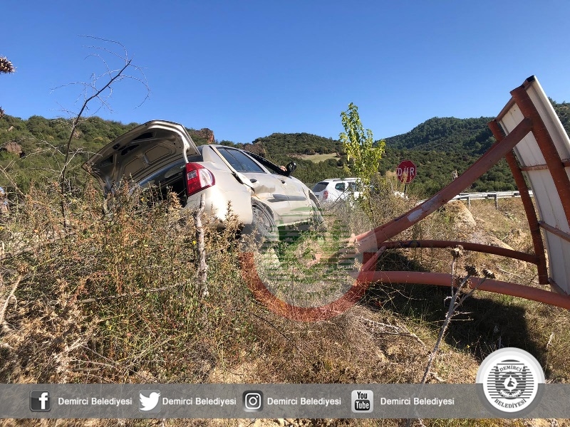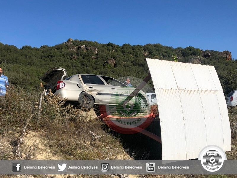 Alınan bilgiye göre Demirci - Salihli karayolu'nun 30'uncu kilometresinde 45 PF 561 plakalı Abdullah Ö. (21) yönetimindeki otomobil Armutlu mahalle mevkiinde virajı alamaması üzerine direksiyon hakimiyetini kaybederek yol kenarındaki yolcu bekleme durağına vurarak durabildi.
