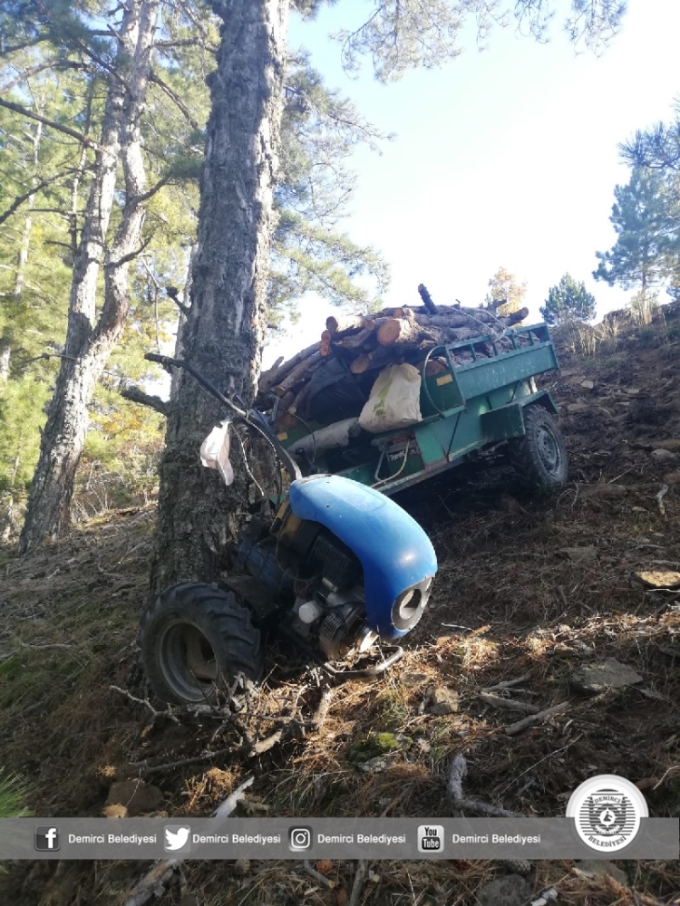 Demirci'de odun yüklü römorklu çapa motorunun devrilmesi sonucu 2 kişi yaralandı.