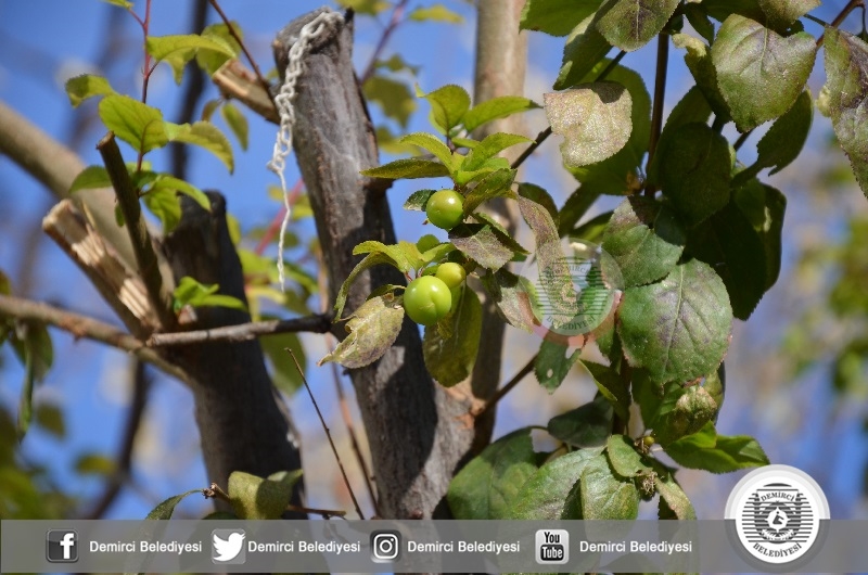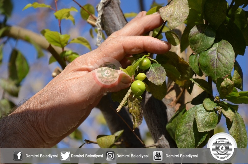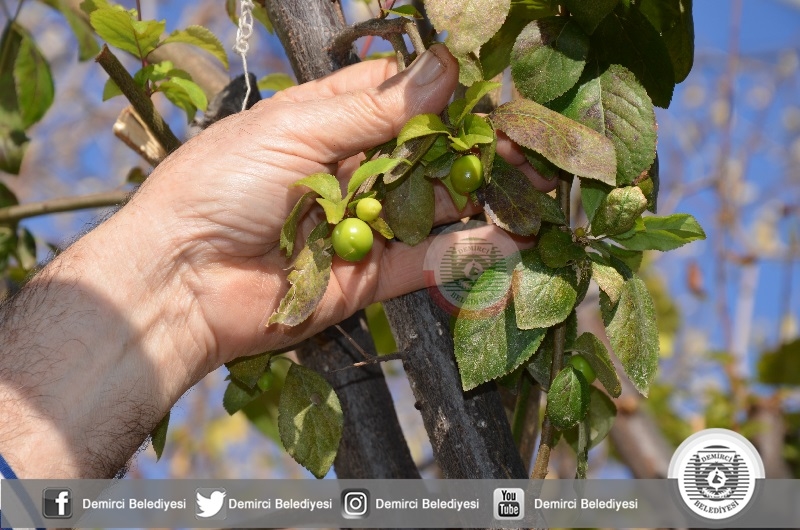 Yazdan kalma günlerin yaşandığı Demirci'de ilçe merkezi ve kırsal mahallelerdeki bazı erik ağaçları yeniden çiçek verirken, bazı ağaçlarda da erikler çıkmaya başladı.