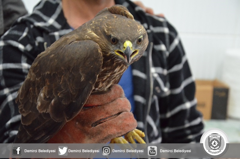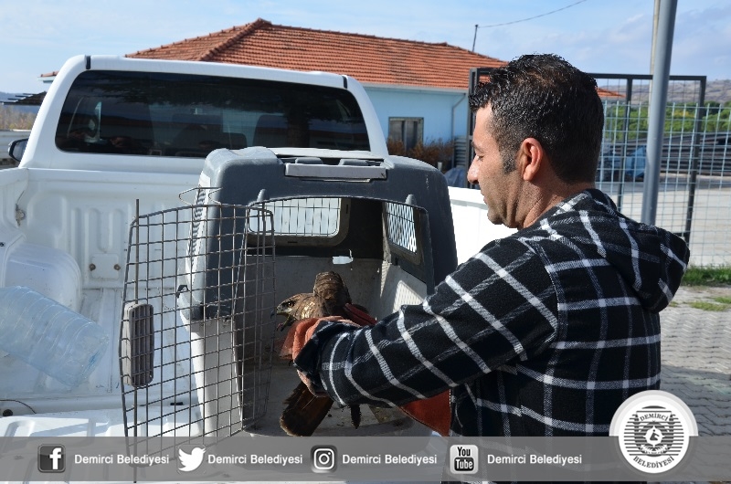 Avcılar Derneği Başkanı Ramazan Akgün tarafından alınan kaya kartalı Demirci Belediyesi veterinerliğine getirildi. Kaya kartalına Demirci Belediyesi Sokak Hayvanları Rehabilitasyon merkezinde yapılan ilk muayene kanadından hafif yara aldığı ve uçamadığı tespit edildi.