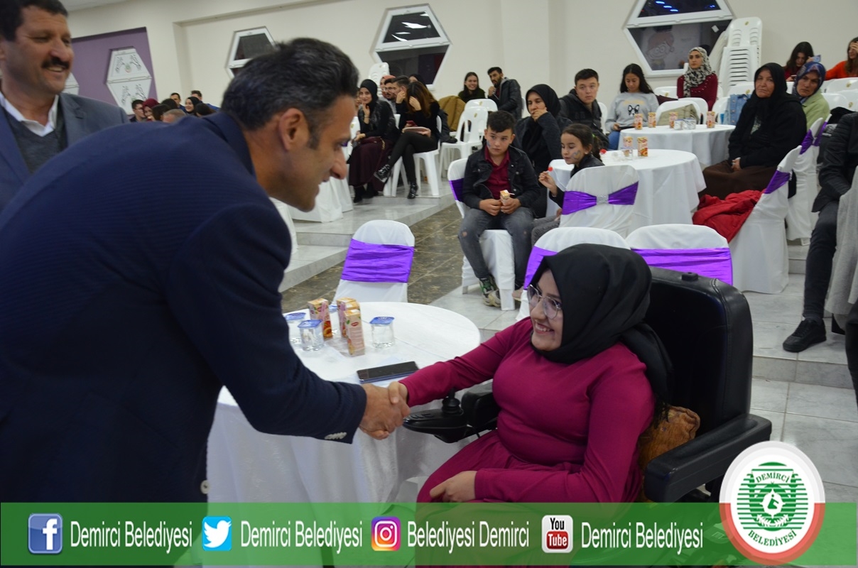 03 Aralık Salı akşamı Akıncılar Düğün Salonunda düzenlenen programa Kaymakam Adem Kaya, Belediye Başkanı Selami Selçuk, Cumhuriyet Başsavcısı Hakan Erdoğan, Siyasi Parti İlçe Temsilcileri, Belediye Meclis Üyeleri, Aileler ve Engelli Vatandaşlar katıldı.