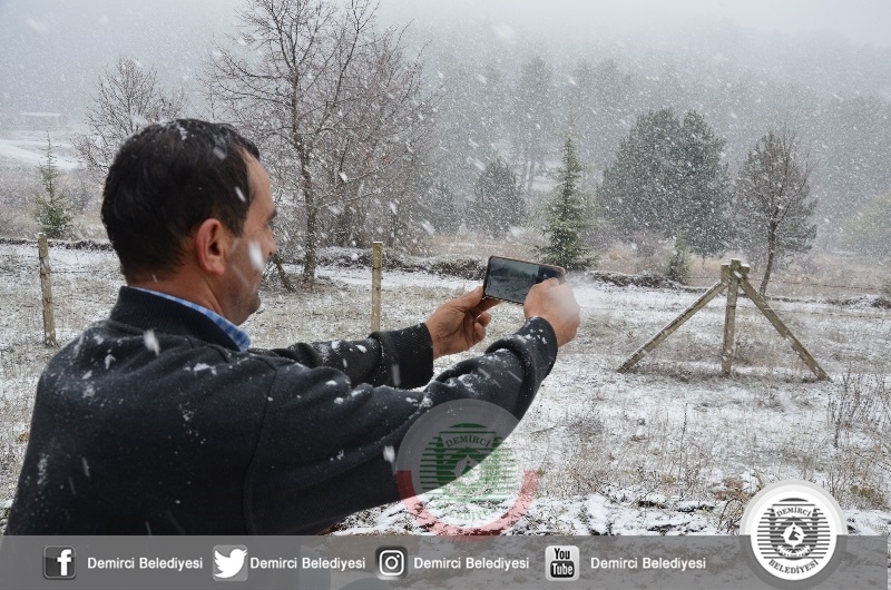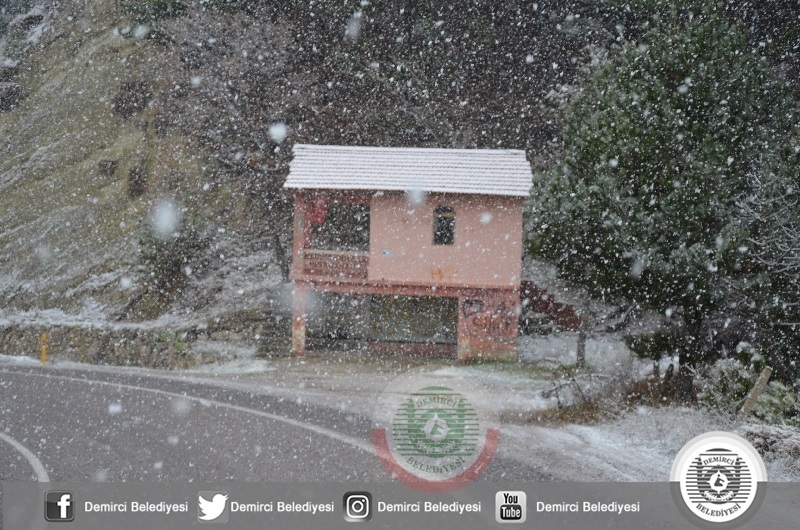 DEMİRCİ'DE YAĞMUR, YÜKSEKLERDE KAR. KIŞ GELDİ