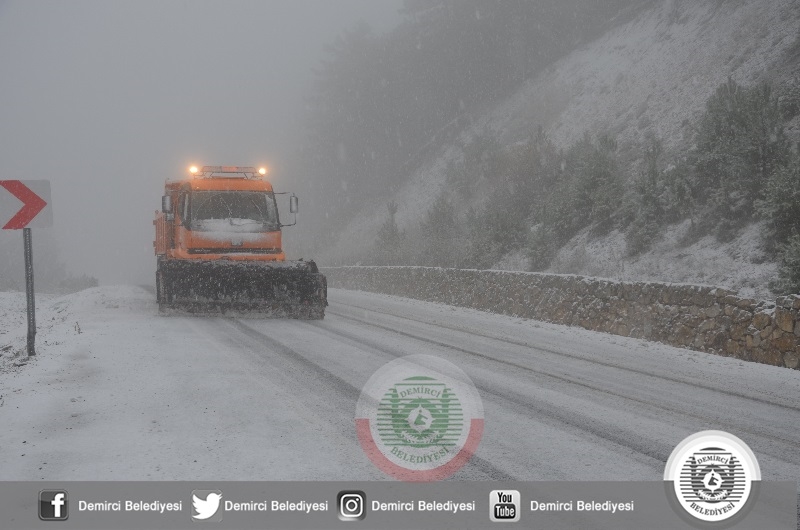 Demirci ve Simav karayolları ekipleri kar yağışı ile birlikte Demirci - Simav karayolunda kar küreme araçları ile yol temizleme çalışması yaptı.