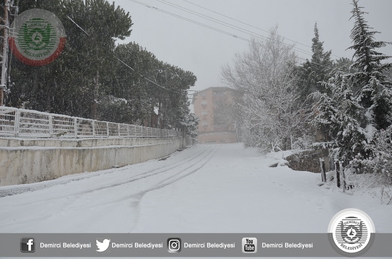 Demirci Belediyesi ekipleri ilçe merkezinde yolların buz tutmaması için gün boyu tuzlama ve kar temizleme çalışmalarına devam ediyor.