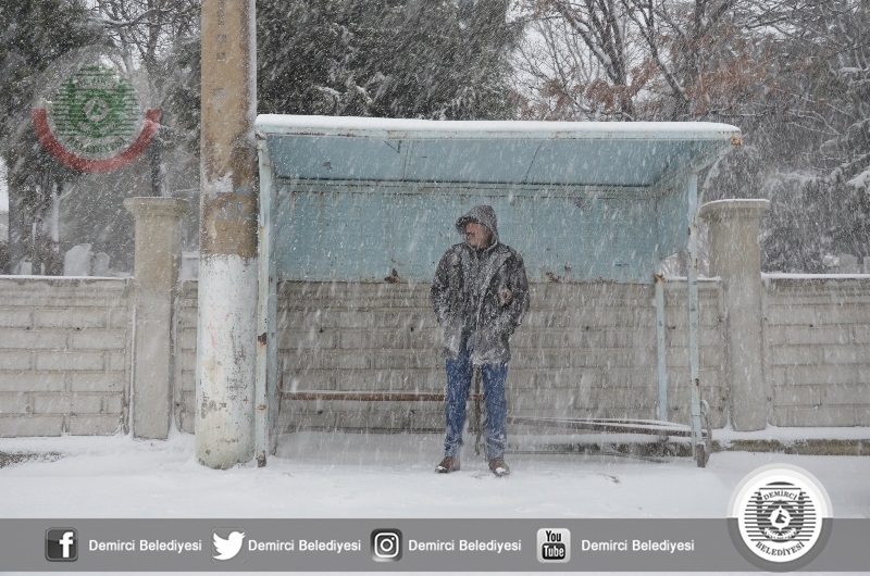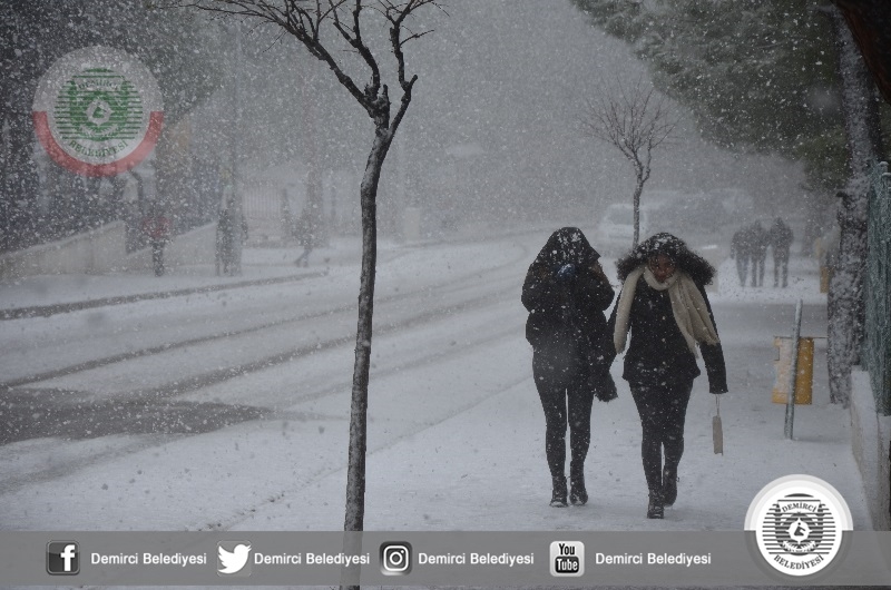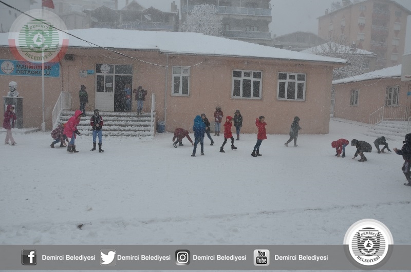 Demirci ilçe merkezinde de etkili olan kar ve tipi sebebiyle ilçeye taşımalı eğitim ile gelen öğrenciler Kaymakamlık makamınca yarım gün okullar tatil edildi.