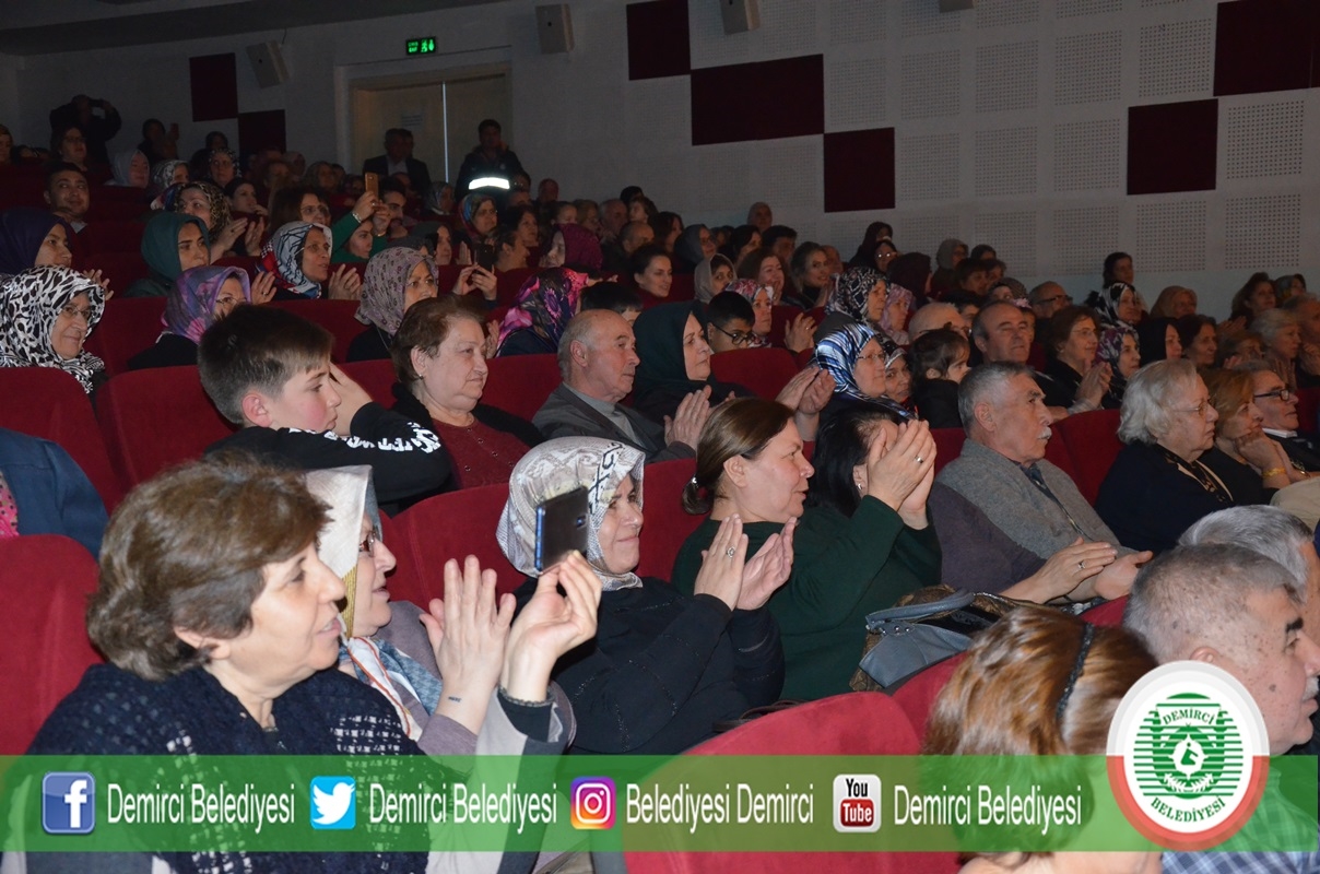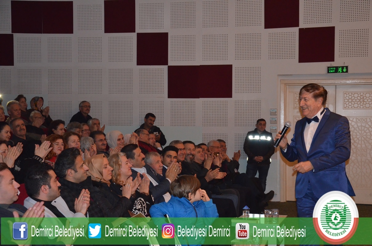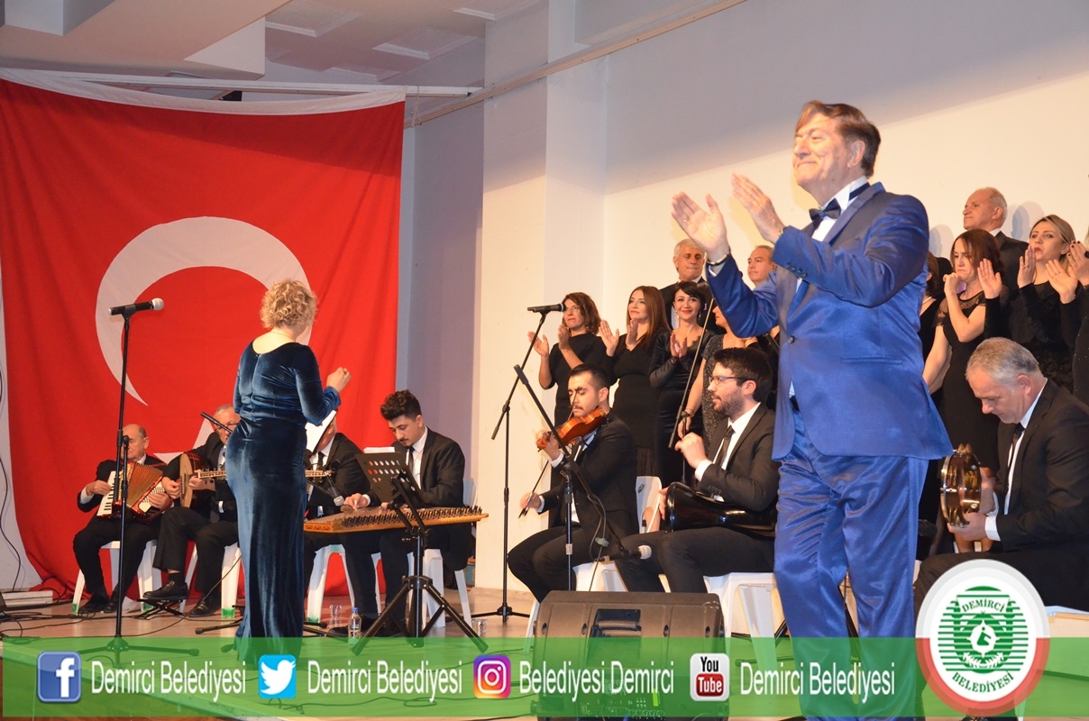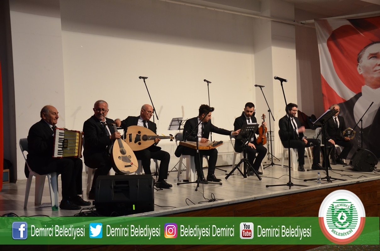 Demirci Belediyesi sosyal ve kültürel etkinlikleri kapsamında 11 Ocak 2020 Cumartesi günü Ticaret ve Kültür Merkezi konferans salonunda düzenlenen Türk Sanat Müziği konserine , Demirci Kaymakamı Adem Kaya, eşi Halide Kaya, Belediye Başkanı Selami Selçuk, eşi Güzide Selçuk, Cumhuriyet Başsavcısı Hakan Erdoğan, İlçe Jandarma Komutanı Teğmen Murat İnce, AK Parti İlçe Başkanı Mehmet Acar, MHP İlçe Başkanı Ümit Kanyılmaz, İzmir Demircililer Dernek Başkan Yardımcısı Hasan Kaval, Sivil Toplum Kuruluşu Başkanları ve vatandaşlar katıldı.