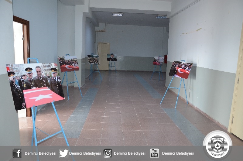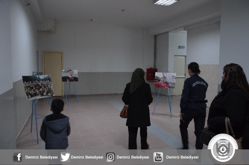 Konferans salonu girişine Şehit Astsubay Uğur Palancı'nın görevi esnasında çekilen fotoğraflarından oluşan sergi Şehitin Anne ve Babası tarafından ziyaret edildi.