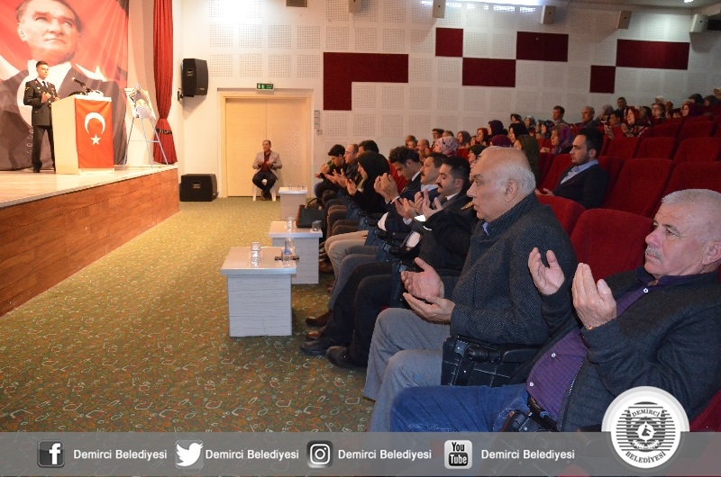 Ticaret ve Kültür Merkezi konferans salonunda yapılan Şehit Uğur Palancı ve Şehitleri anma programına Demirci Kaymakamı Adem Kaya, Belediye Başkanı Selami Selçuk, Cumhuriyet Başsavcısı Hakan Erdoğan, Şehitin Babası ,İhsan Palancı, Anne Yasemin Palancı, İlçe Emniyet Müdürü Mesut Muhammet Solak, MHP İlçe Başkanı Ümit Kanyılmaz, Şehitin kardeşleri Ümit ve Kadir Palancı, görev arkadaşları ve çok sayıda vatandaş katıldı.