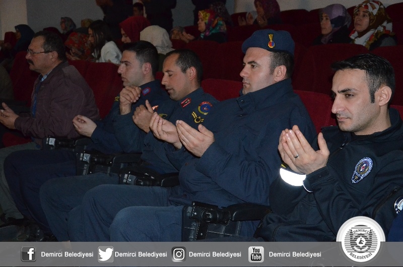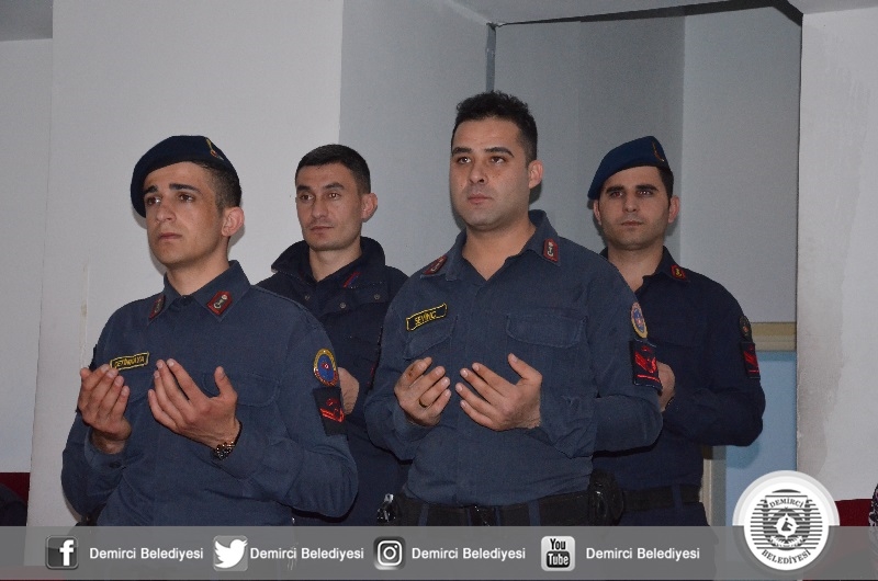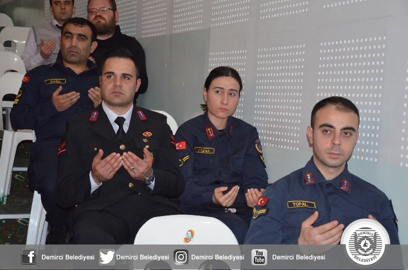 Demirci İlçe Müftülüğünce düzenlenen mevlid-i şerif programında Şehitler için Kuran-ı Kerim okunurken, İlçe Müftüsü Mustafa Kocagöz tarafından da dua yapıldı.