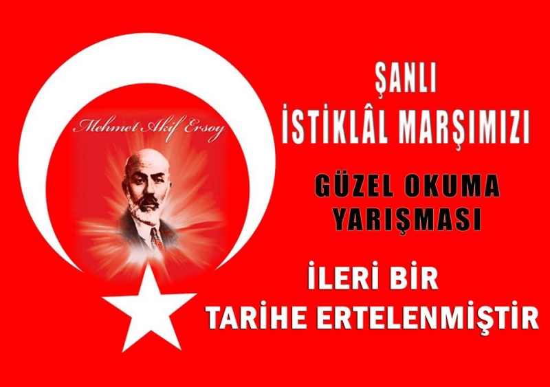Demirci'de 12 Mart Perşembe akşamı yapılacak olan " İstiklal Marşımızı Güzel Okuma Yarışması " ileri bir tarihe ertelendi.