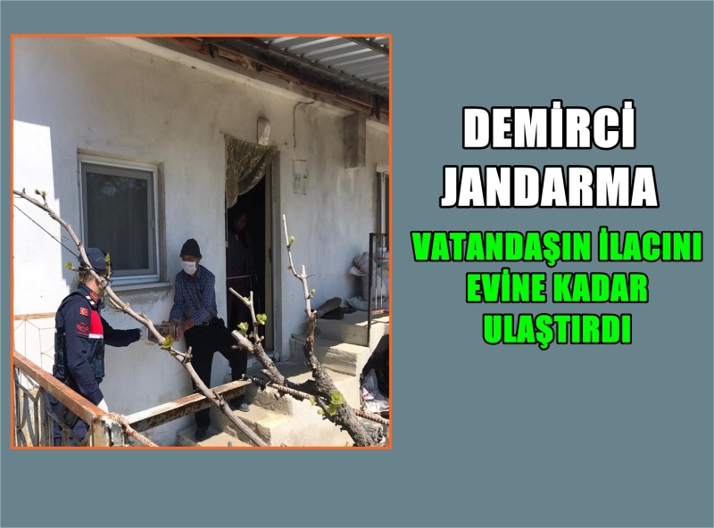 Demirci İlçe Jandarma Komutanlığına iletilen talep üzerine Jandarma ekipleri Yeşildere Mahallesindeki vatandaşın ilacını temin ederek, adresine kadar ulaştırdı.