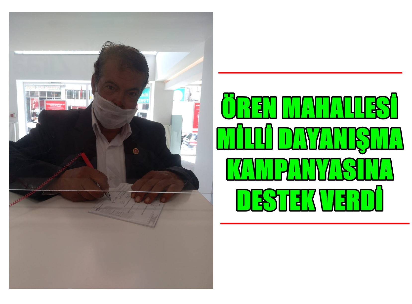Mahalle Muhtarı Hasan Taş, Cumhurbaşkanımız Recep Tayyip Erdoğan tarafından başlatılan Milli Dayanışma kampanyasına Ören Mahalle halkımızda topladığı parayı bağışladık. Allah Devletimize güç kuvvet versin" dedi.