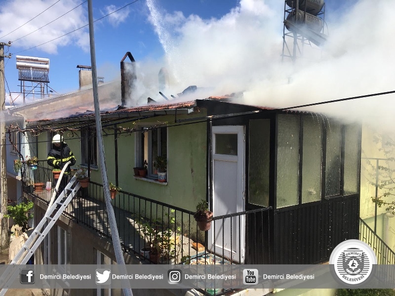 Demirci'de henüz nedeni belirlenemeyen bir nedenden dolayı çıkan yangında, bir ev yanarak zarar gördü.