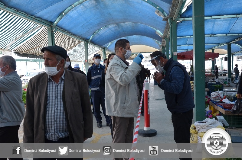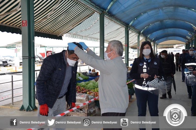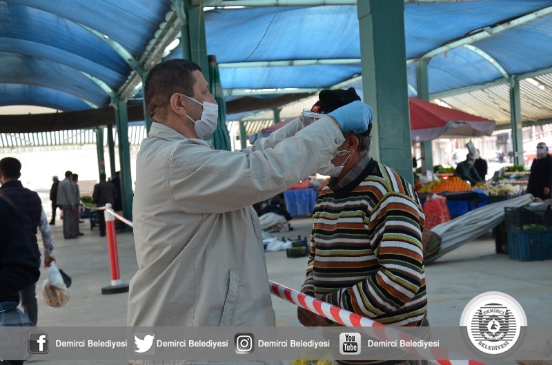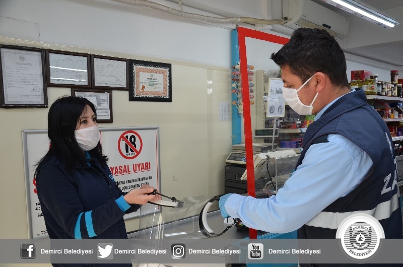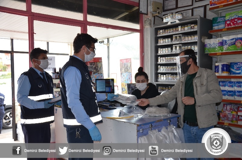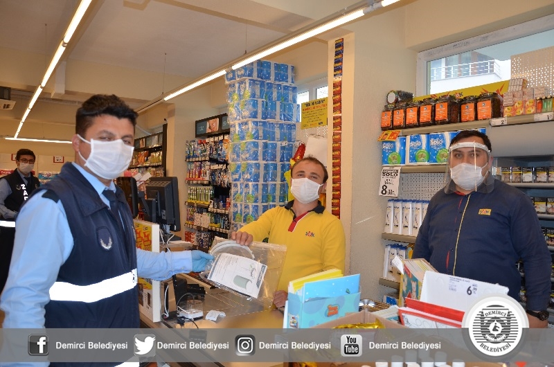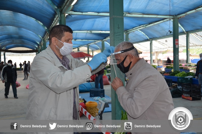 Başkan Selami Selçuk yaptığı açıklamada " Kovid-19 salgını ile tüm Türkiye'de olduğu gibi Demirci'de de sürdürüyoruz. Bu kapsamında daha önce sağlık çalışanlarımıza yüz koruyucu siperlik vermiştik. Vatandaşla ve müşteri ile sürekli iletişim halinde olan esnafımıza da bu noktada destek sunduk. İlçemizdeki faaliyet gösteren Manav, Market, Bakkal ve Fırınlarda çalışanların takmaları için yüz koruyucu siperlik verdik. İlçemiz kurumları ile istişareli olarak Kovid-19 salgını ile mücadeleyi sürdürüyoruz. Kıymetli vatandaşlarımızın tedbirleri elden bırakmadan, hassasiyetle uygulamalarını tavsiye ediyorum. Unutmayalım bu süreci birlikte atlatacağız" dedi.
