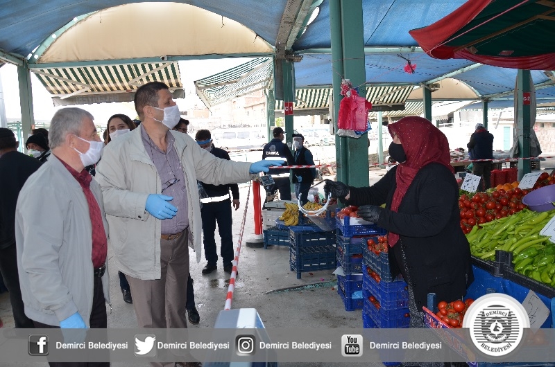 Belediye Başkanı Selami Selçuk ve Belediye Başkan Yardımcısı Mustafa Ünlü İlçe pazaryerine giderek pazarcı esnafına yüz koruyucu siperlikleri teslim ederek, tedbirlere uyulması noktasında uyarılarda bulundular.