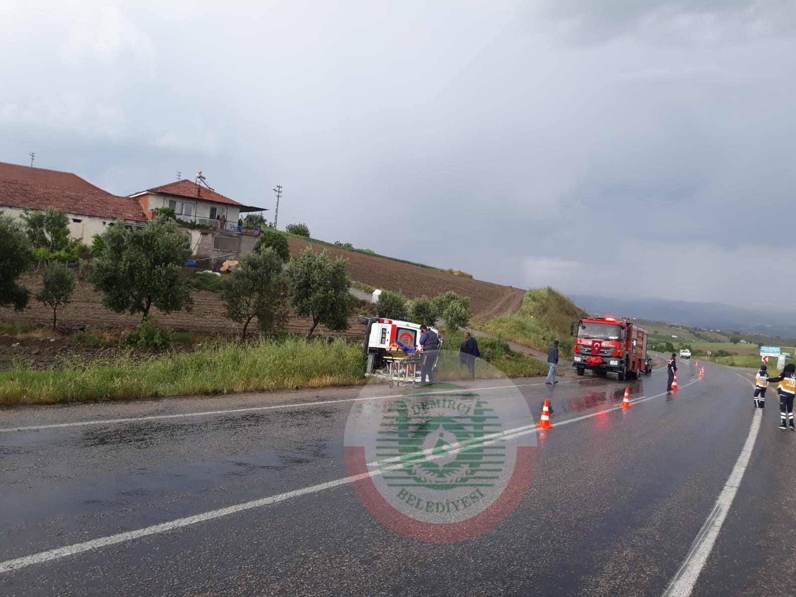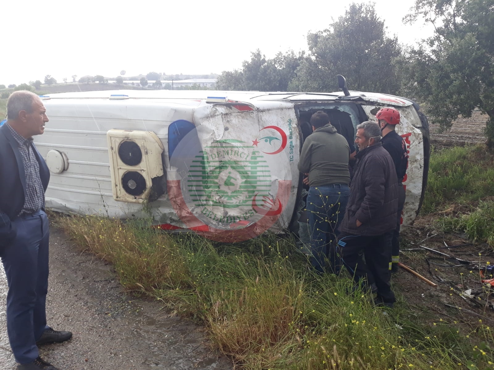 Demirci 112 Ambulansında bulunan şoför ve 2 sağlık görevlisinin sağlık durumunun iyi olduğu belirtildi.