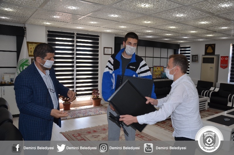 Belediye Başkanı Selami Selçuk, makamında ağırladığı üniversite öğrencisi Oğuzhan Gür'e temin edilen bilgisayarı vererek, kardeşi ile birlikte derslerinde sonsuz başarılar diledi.