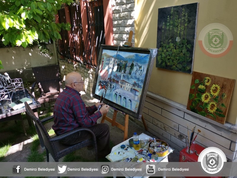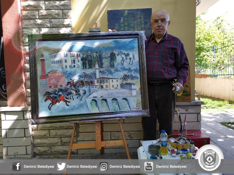 Ressam İsmail Çeşmeci, 11 Mayıs 1950'de vefat eden ve Milli Mücadele döneminde gösterdiği kahramanlıkla Demircililerin gönlünde taht kuran Kaymakam İbrahim Ethem Akıncı'nın vefatının 70. yılı anısına ilçenin tarihi mekanlar ile Demirci Akıncıları'nı temsil eden atlıların yer aldığı yağlı boya bir tablo hazırladı.