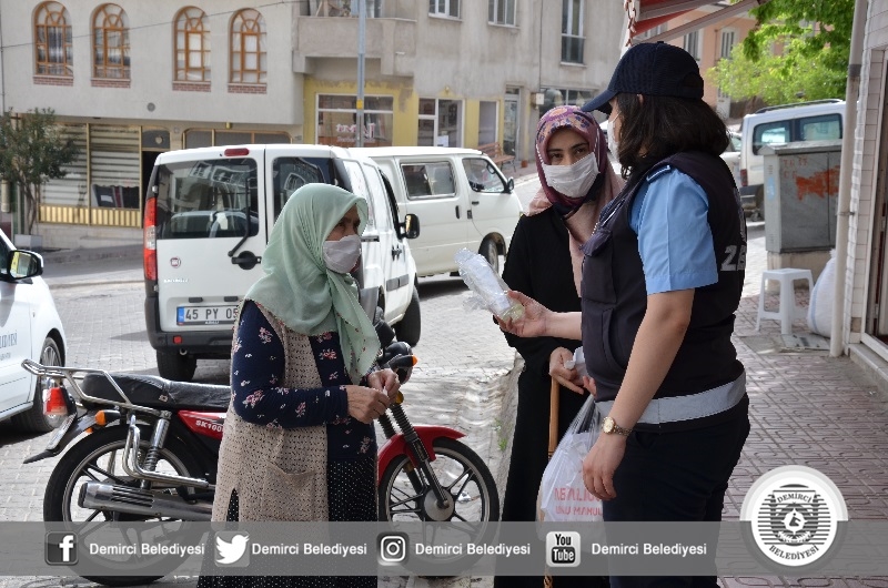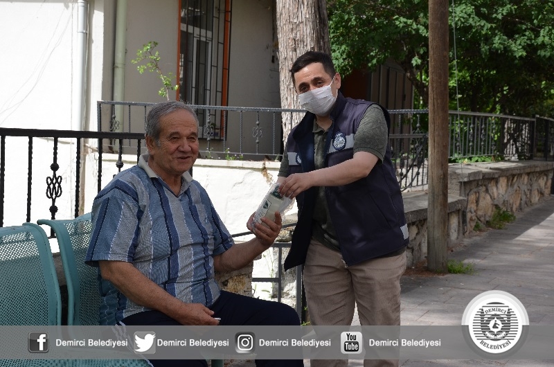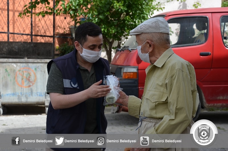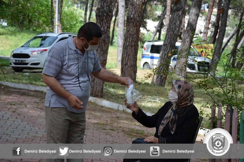 Sosyal mesafe ve maske takarak kurallara uygun dışarıya çıkan yaşlıları Belediye Başkanı Selami Selçuk'ta ziyaret ederek, hijyen paketi hediye etti.