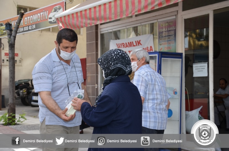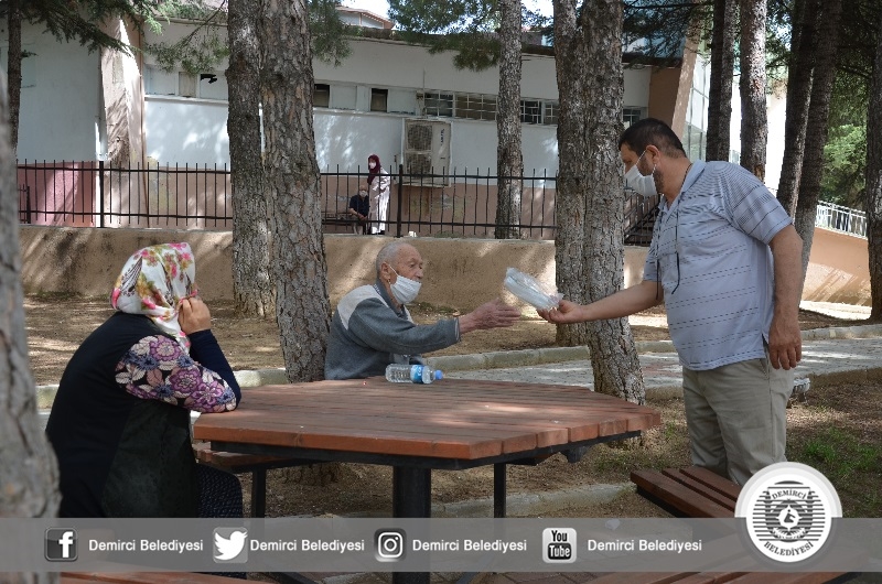 Başkan Selami Selçuk, Zabıta ekipleri ile birlikte ilçe merkezindeki parklarda gölgede temiz havanın tadını çıkaran yaşlılara ve kronik hastalara kolonya ve maskeden gibi çeşitli malzemelerden oluşan hijyen paketi vererek, taleplerini dinledi.