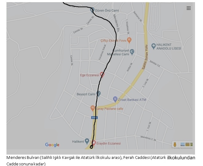 2. Menderes Caddesi (Vakıfbank Önünden), Hamam Sokak (Çereşe meydanı arası), Menderes Bulvarı tamamı.