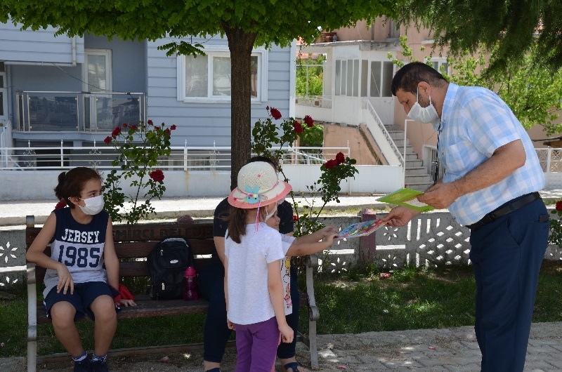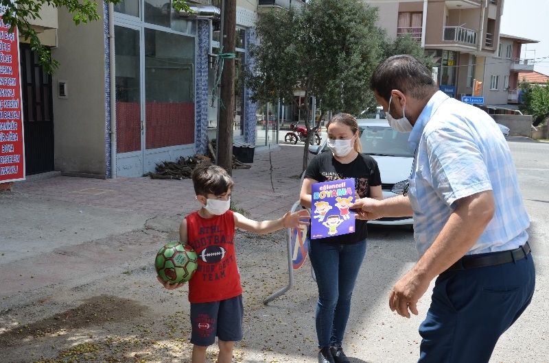 Demirci ilçesinde yeni tip koronavirüs (Kovid-19) salgını nedeniyle alınan önlemler kapsamında 2. kez sokağa çıkan 14 yaş altı çocuklara Başkan Selçuk ve eşi Güzide Selçuk kitap hediye ettiler.