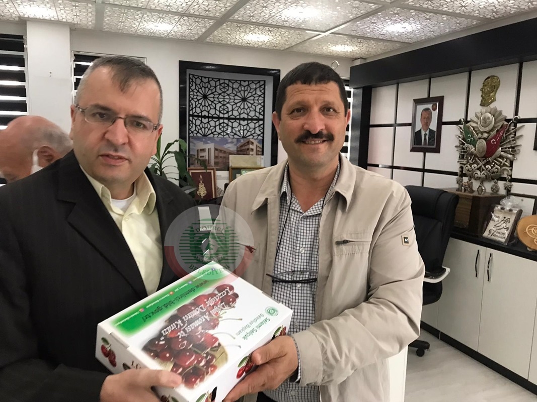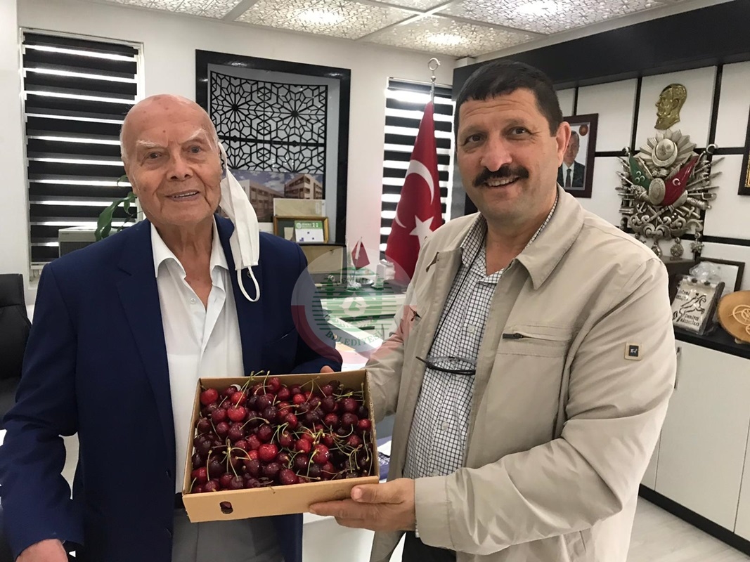 Belediye Başkanı Selami Selçuk'ta, kendilerini ziyaret eden Tarhana Baba'nın sahibi Mustafa Yeldanlı'ya teşekkür ederek, Demirci'nin lezzetli kirazlardan hediye etti.