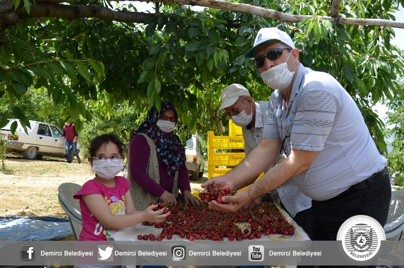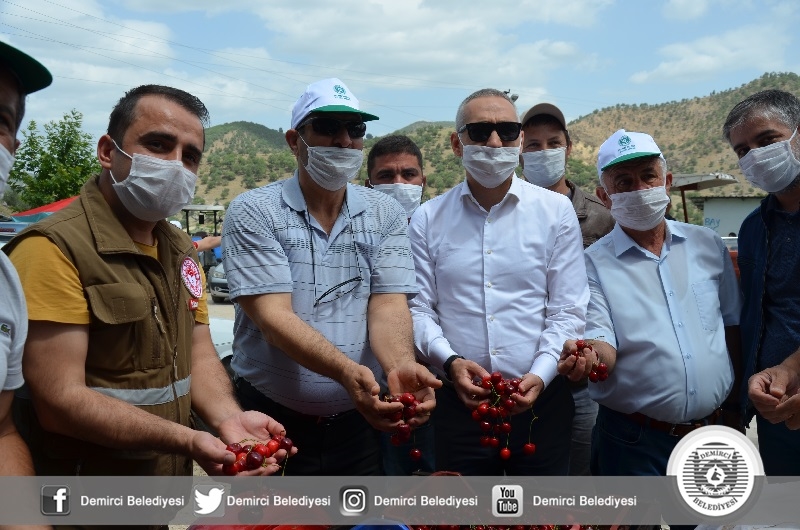 Belediye Başkanı Selami Selçuk da" Türkiye'de geç kiraz hasat yapan bölgelerden biri olduklarına dikkati çekerek, "Demirci kirazımız hem kaliteli ve lezzeti yönüyle dış piyasadan yoğun talep gören bir ürün. Kiraz fiyatı çiftçimizin yüzünü güldürdü. Hedefimiz ilçemize kazandırdığımız sulama göleti ve baraj yatırımları ile Demirci'de kiraz üretiminin yükseltilmesi. Akdeniz Meyve Sineğinden Ari Alan projesi ile de hedefimiz Demirci kirazının hak ettiği yere ulaşmasıdır." diye konuştu.