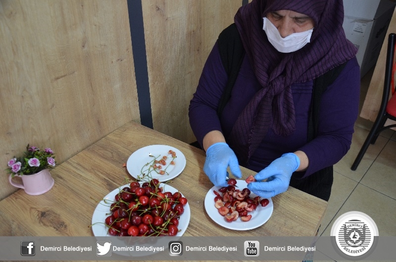 Türkiye'nin önde gelen kiraz üretim merkezlerinden Demirci'de ürünün katma değerini artırmaya yönelik çalışmalar kapsamında kirazlı dondurma üretildi.
