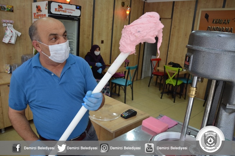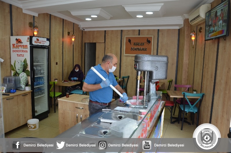 Usta Nurettin Aymergen yaptığı açıklamada " 12 yaşımdan bu yana dondurma ve tatlıcılık yapıyorum. 40 yıldır bu mesleğin içindeyim. 10 yıldır da Demirci'deyim. Geçen yıl Demirci'mizin şifalı ürünü hünnapından dondurma yaptık. Müşterilerimizin yoğun talep aldık. Bu yılda yine Demirci'nin dünyaya ihraç edilen kirazından dondurma yapalım istedik. Demirci kirazı kırsalda yetişmesinden dolayı, havası ve suyundan dayanıklı ve dondurma kıvamında lezzeti tam olarak alabiliyorsunuz. Kendi bahçemde yetiştirdiğim ürünlerin yanı sıra üreticilerden de alarak Demirci Kirazının dondurmasını herkese tattırma gayretindeyim" dedi.