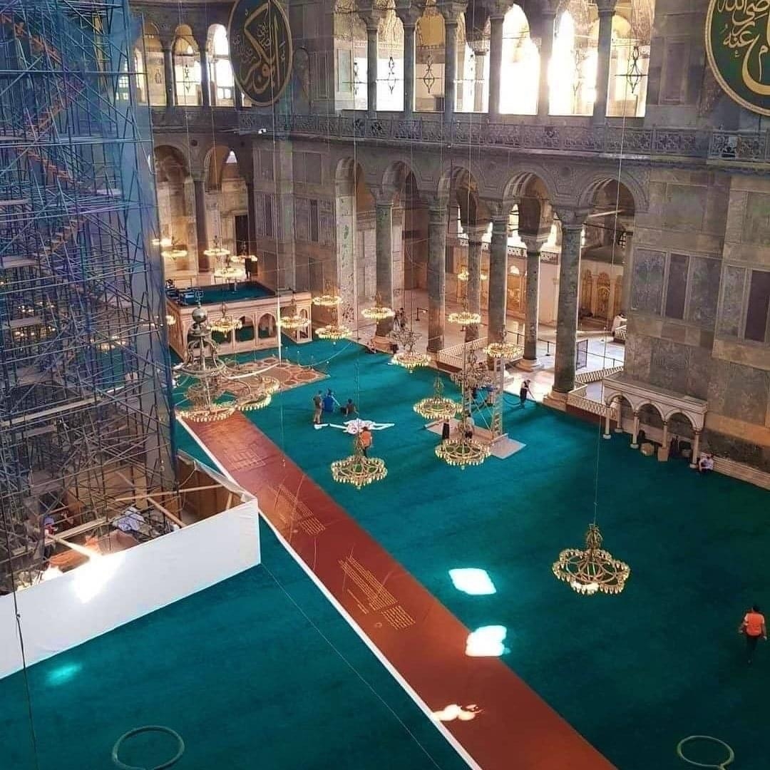 Ayasofya Camii halısı gece gündüz çalışılarak hazırlanan Ayasofya Cami halısı 24 Temmuz Cuma günü sabah saatlerinde tamamlanarak hazır hale getirildi.