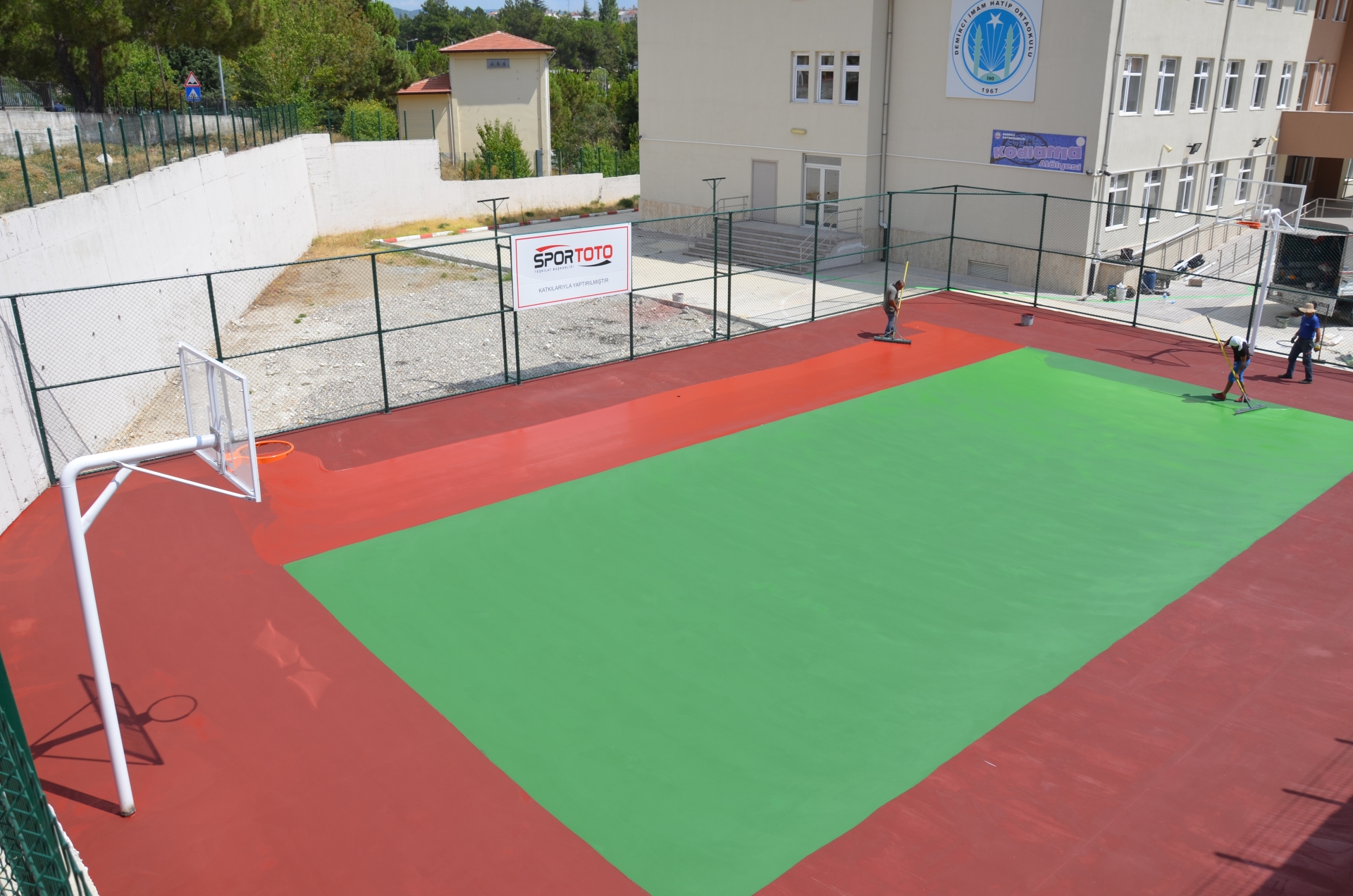 Saha zeminine beton çalışmasının yapılmasının ardından, çevresine tel örgü yapılarak güvenli hale getirildi. Akrilik zemin çalışmasının yapıldığı sahada çizgi çalışmalarının da tamamlanması ile birlikte hizmete sunuldu.