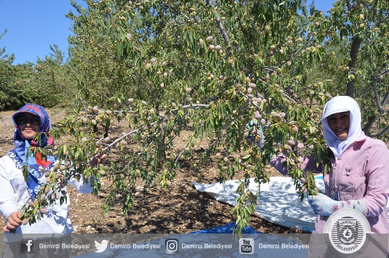 Demirci'de ilçe merkezinin yanı sıra Mezitler, Boyacık, Alaağaç, Örücüler, Çanakçı ve Mahmutlar olmak üzere 20'ye yakın mahalledeki 7 bin dekar arazide badem hasadı başladı.