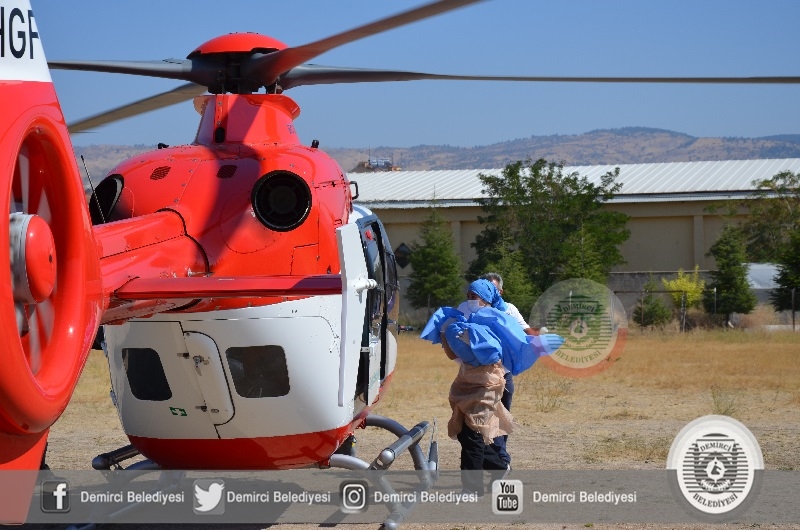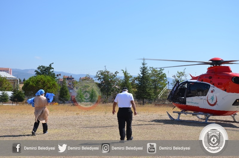 Demirci'de üzerine sıcak suyun devrildiği 14 aylık bebek hava ambulansı ile sevk edildi.