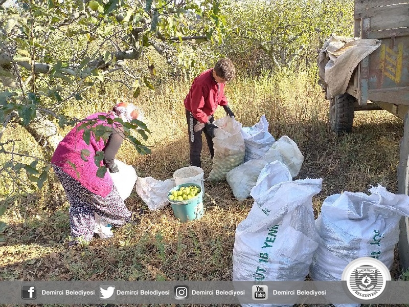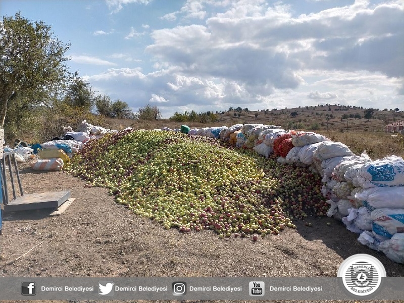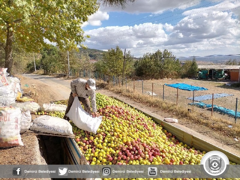Hasatta ağaç diplerine dökülen ve hava şartları dolayısı ile yara alan elmalar da ekonomiye kazandırılmak için toplanarak Denizli, Isparta ve Bursa'daki meyve suyu fabrikalarına gönderiliyor.