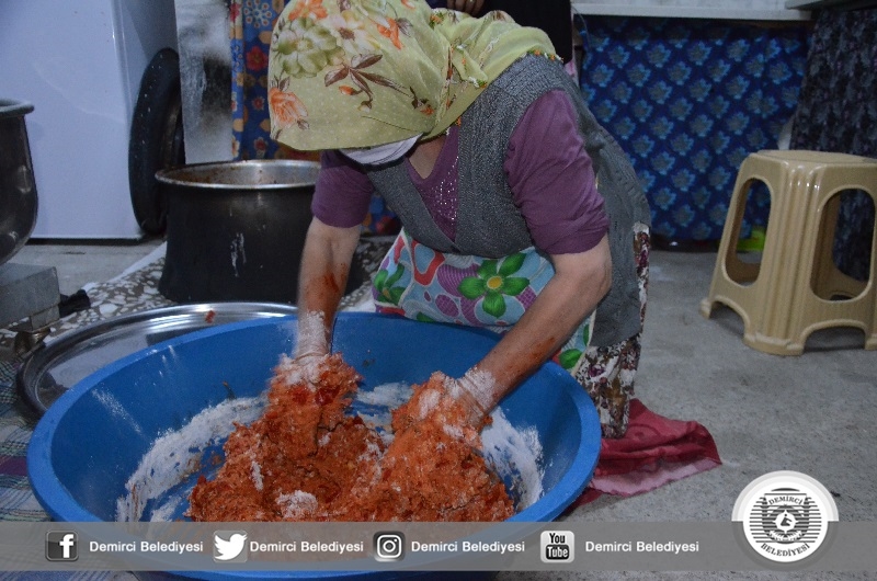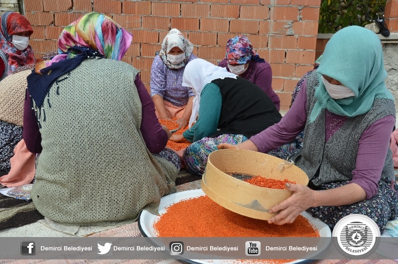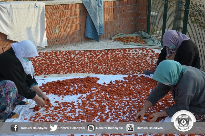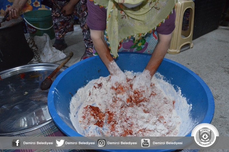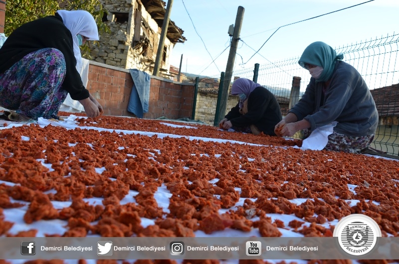 Kışın yaklaşmasıyla sofraların vazgeçilmezi tarhanayı hazırlamak için Demirci merkez ve kırsal mahallelerde hummalı bir çalışma var.