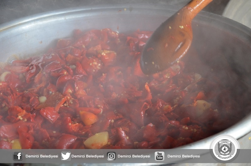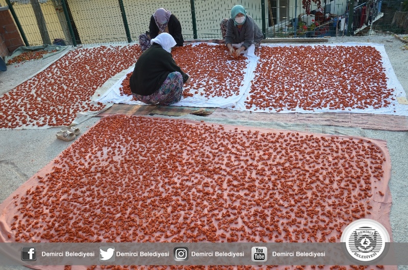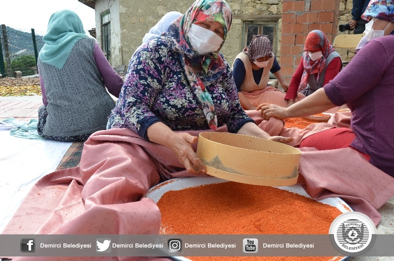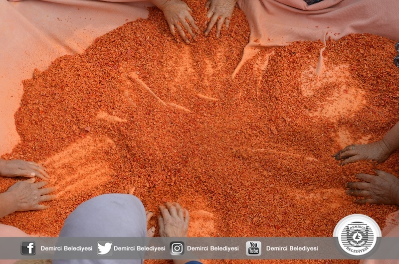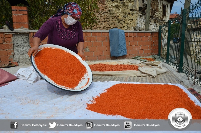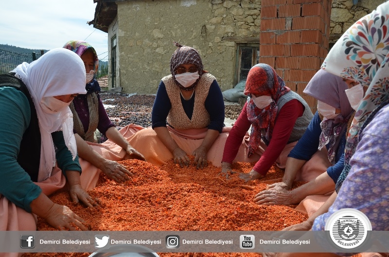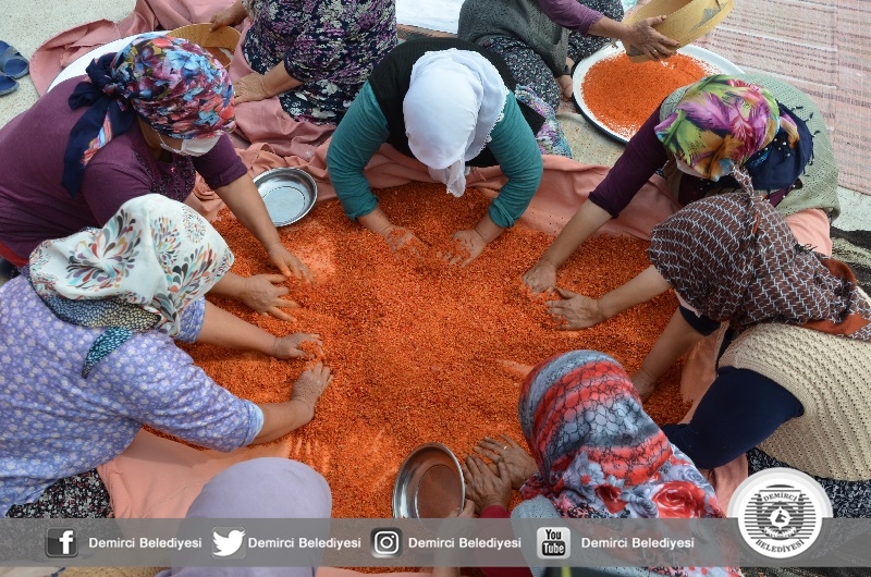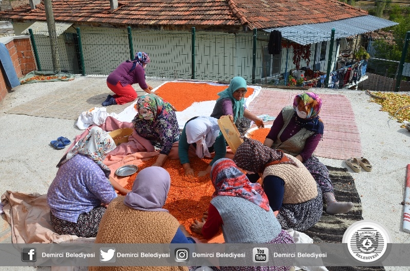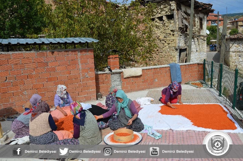 Akdere Mahallesindeki kadınlar imece usulü tarhana yapıyor. Kendi bahçe ve tarlalarından topladıkları kırmızı biberi, iplere dizerek bir hafta güneşte bekleten Akdereli kadınlar, daha sonra suyun çeken biberleri kazanda kaynattıktan sonra hamurla karıştırıp yoğuruyor.