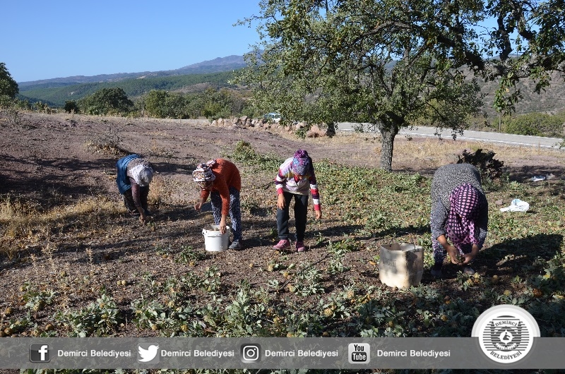 Çiftçiler, kendilerine ait ekimi zor olan yamaç arazilerinde kendiliğinden yetişen meşe palamudunun hasadı eylül ve ekim aylarında ailecek birlikte yapıyorlar.