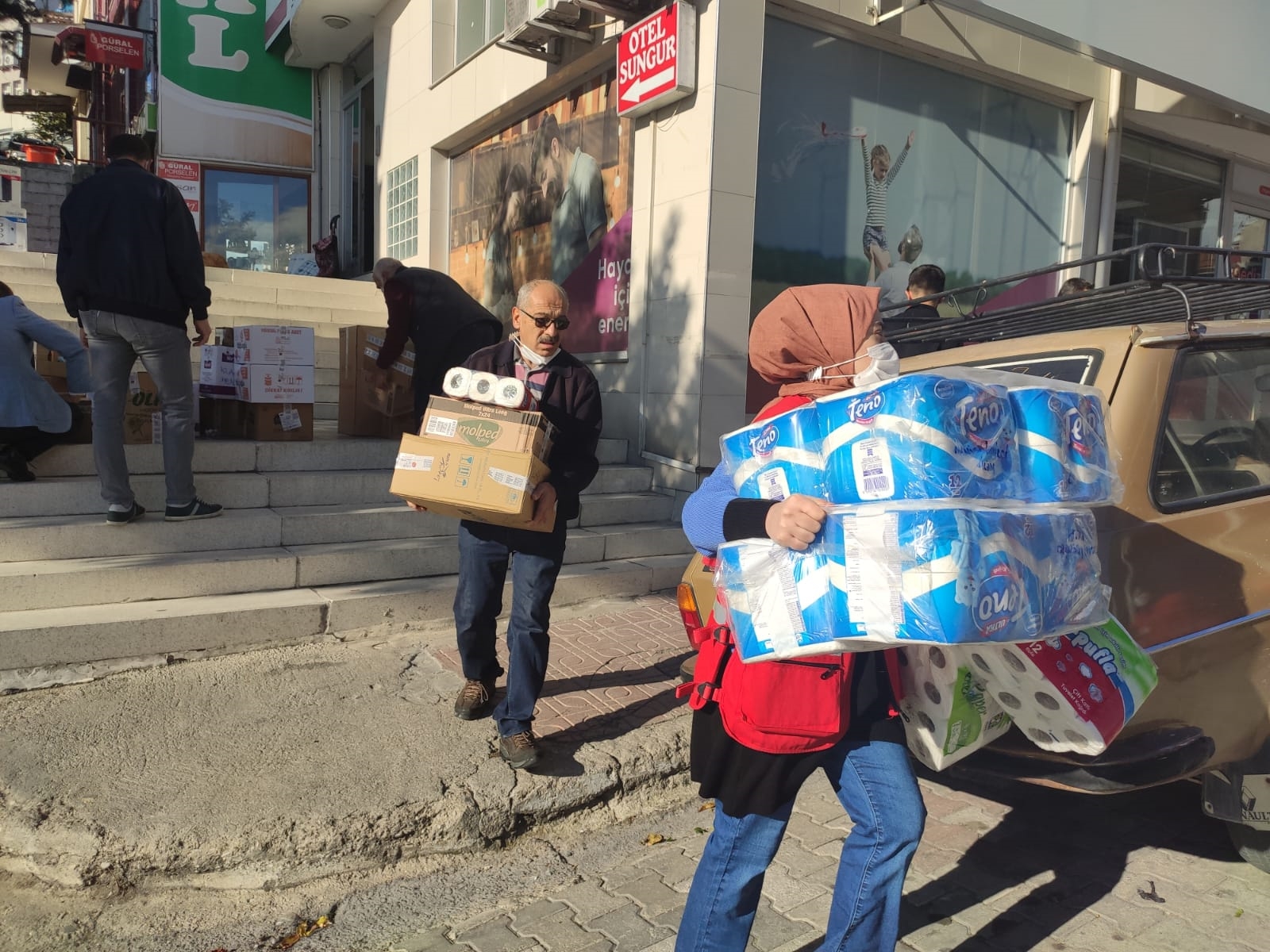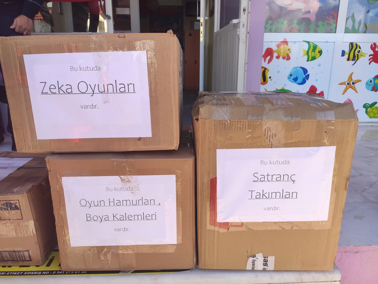 Öğrenciler tarafından okula ulaştırılan yardım malzemeleri Okul Müdürü Oğuz Özkahraman, Müdür Yardımcısı Aydın Yıldırım tarafından kolilere konularak hazırlandı.
