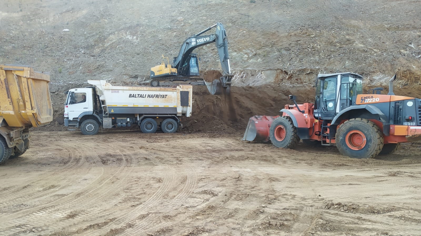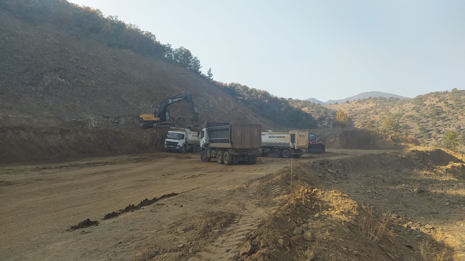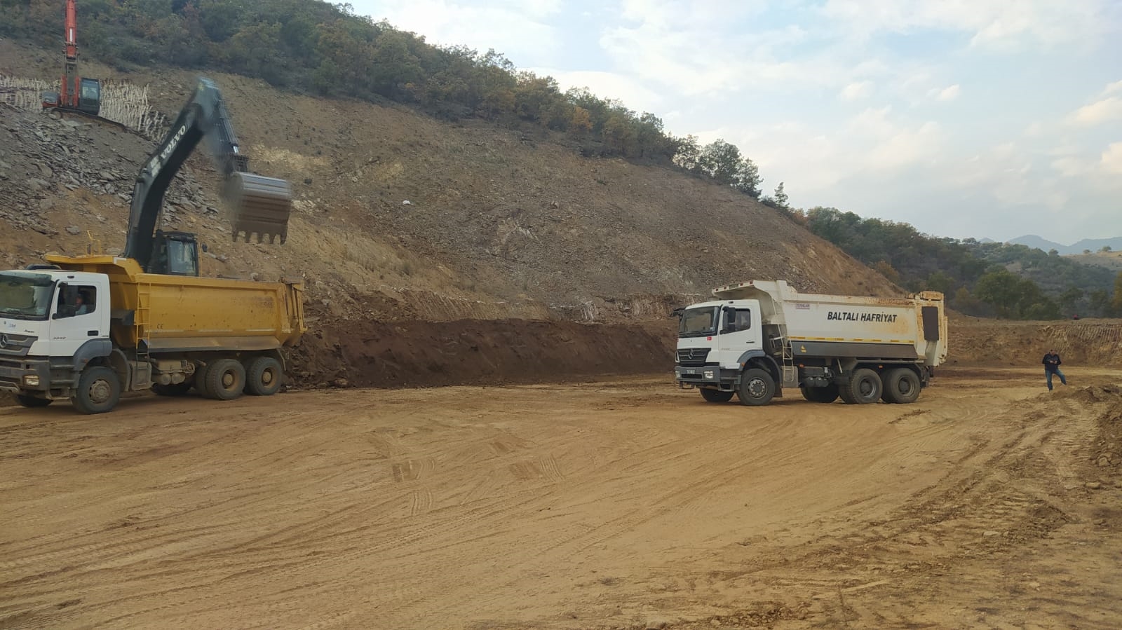 Durhasan Sulama Barajında yüklenici inşaat firması hızla çalışmalara başlayarak 4 tane paletli ekskavatör, 6 kamyon ve 2 kepçe ile barajın yapımını sürdürüyor.