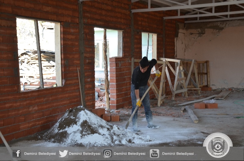 Demirci Belediyesince Serçeler mahallesine 280 metrekare büyüklüğünde, yemekhanesi ve lavabolarının yer aldığı düğün, sünnet ve toplu cemiyet organizasyonlarında kullanılacak olan çok amaçlı salon inşaatında sona geliniyor.