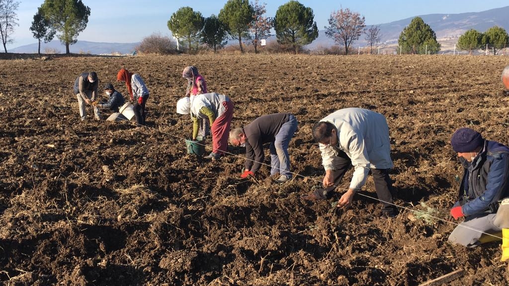 Kaymakam Adem Kaya, üreticiler ile birlikte lavanta fidesi dikerek bereketli bir sezon olması temennisinde bulundu.