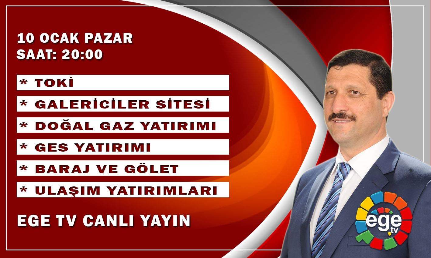 Yatırım ve hizmetleri ile Egenin yükselen yıldızı olan Demirci, pazar akşamı Ege Tv'de canlı yayınla devam eden yatırımlar ve yeni yatırım projeleri ekranlarda olacak.