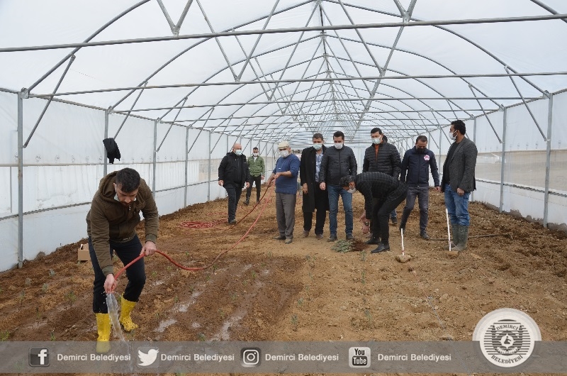 Belediye Başkanı Selami Selçuk " İlçemizdeki üreticilerimizin alternatif tarım ürünü ile ekonomik gelir elde etmesi için çalışmalar yapmaya devam ediyoruz. Bu kapsamda Kaymakamlığımız, Manisa Büyükşehir Belediyesi, İlçe Tarım Müdürlüğü, Ziraat Odası Başkanlığı ve Belediyemiz iş birliği ile sera kurulumu yapılarak ilk fideleri toprakla buluşturduk. Burada yetişen fideler üreticilerimize ek gelir olacak. Şu an 500 fide dikimini sağladık. Hedef 2 yıl içerisinde seradan 5 Bin fide elde etmek" dedi.