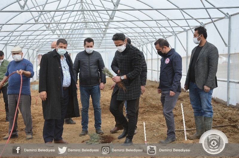Demirci Kaymakamı Adem Kaya, Belediye Başkanı Selami Selçuk, Manisa Büyükşehir Belediyesi Demirci İlçe Koordinatörü Gökhan Aslan, İlçe Tarım ve Orman Müdürü İslam Köse ve Ziraat Odası Başkanı Mehmet Karakaya lavanta üretiminin yapılacağı serada inceleme yaptılar.