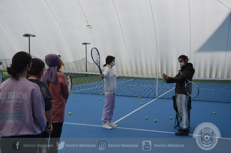 Hükümet konağı arkasında Gençlik ve Spor Bakanlığı ve Demirci Belediyesi işbirliği ile yapılan tenis sahalarında 9-14 yaş gruplarında 40 kursiyer, 14 yaş ve üzeri 70 kursiyere tenis antrenörlerince eğitimleri haftanın 7 günü belirlenen saatlerde yapılıyor.