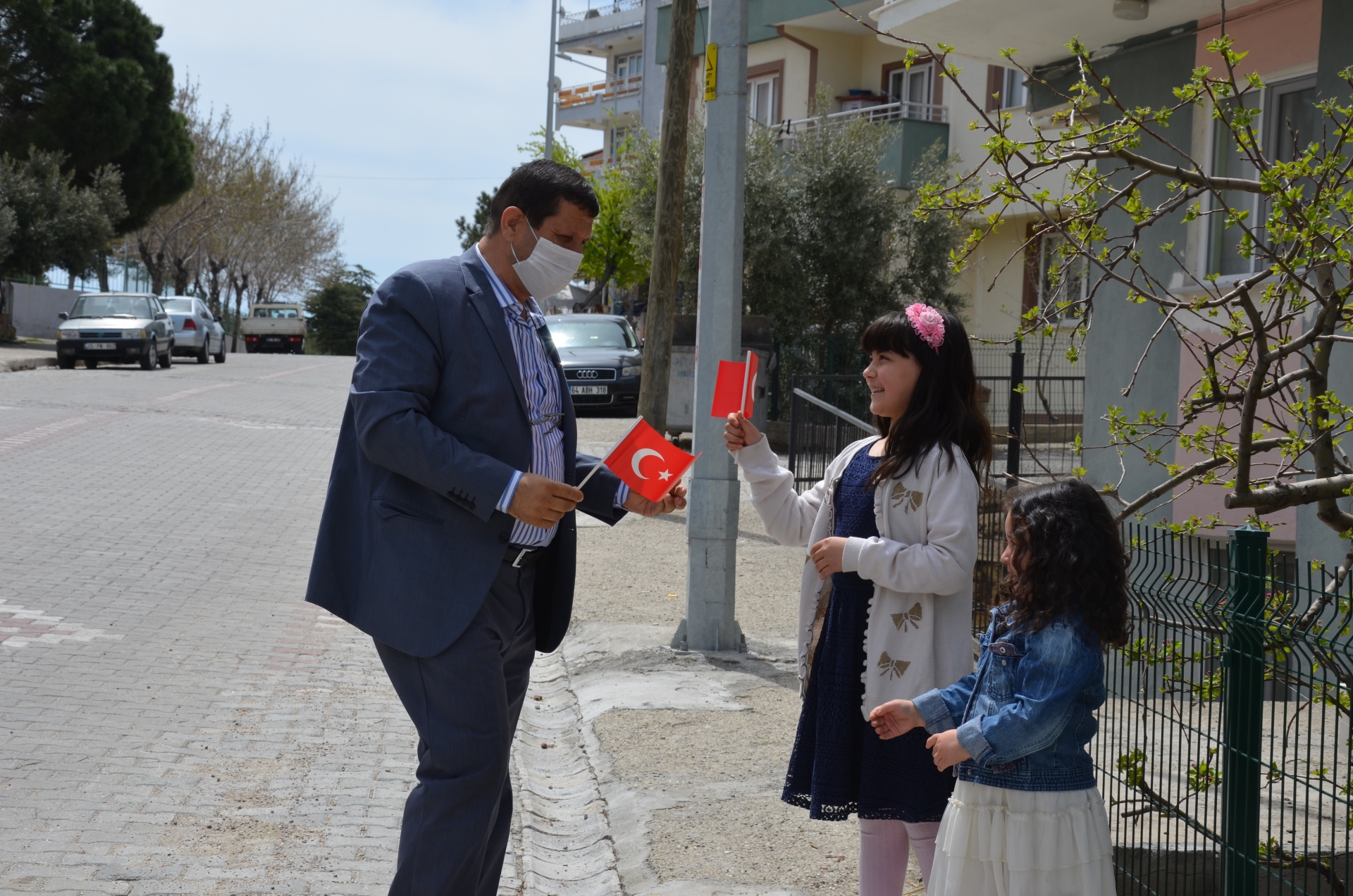 Çocuklar da araçtan yapılan müzik yayınıyla ellerindeki bayraklarını sallayıp 23 Nisan coşkusunu yaşadılar. Çocukların neşesine büyükler de alkışlarla destek oldu.