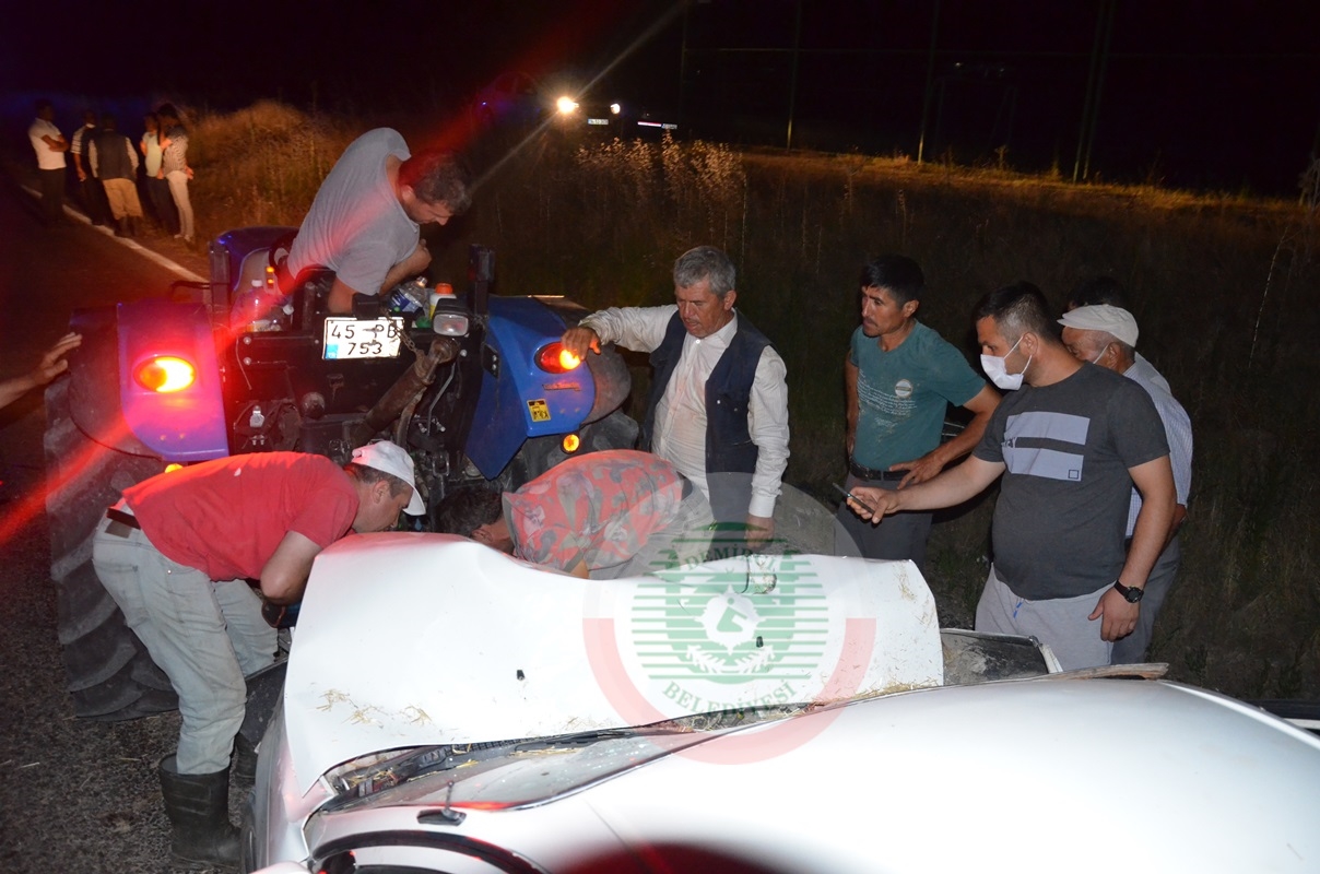 Edinilen bilgiye göre Demirci - Salihli karayolu kılavuzlar mevkinde 45 C 9556 plakalı Mustafa K. yönetimindeki otomobil önünde seyir halinde giden saman yüklü 45 PN 326 plakalı İsmail Y. yönetimindeki traktöre arkadan çaptı.