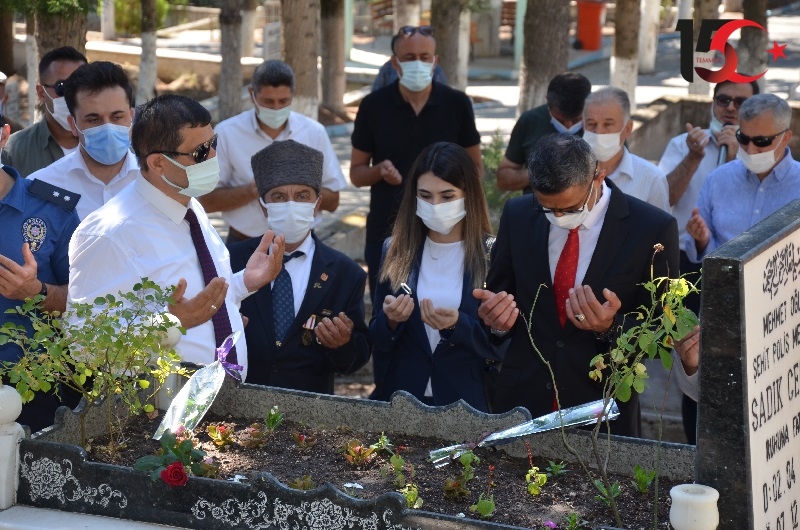 Demirci'de 15 Temmuz Demokrasi ve Milli Birlik Günü kapsamında Demirci Kaymakamı Adem Kaya, Belediye Başkanı Selami Selçuk, Cumhuriyet Başsavcısı Betül Ilıca, Şehit aileleri ve Gaziler ilçe kabristanlığında şehit mezarlarını ziyaret ederek dua ettiler.