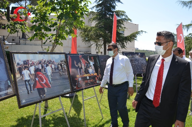 Demirci Belediyesi hizmet binası bahçesine kurulan " AA 15 Temmuz Fotoğraf Sergisinin " açılışını yapan Kaymakam Adem Kaya ve Belediye Başkanı Selami Selçuk, ilçe protokolü ve vatandaşlarla ile birlikte sergiyi gezdiler.